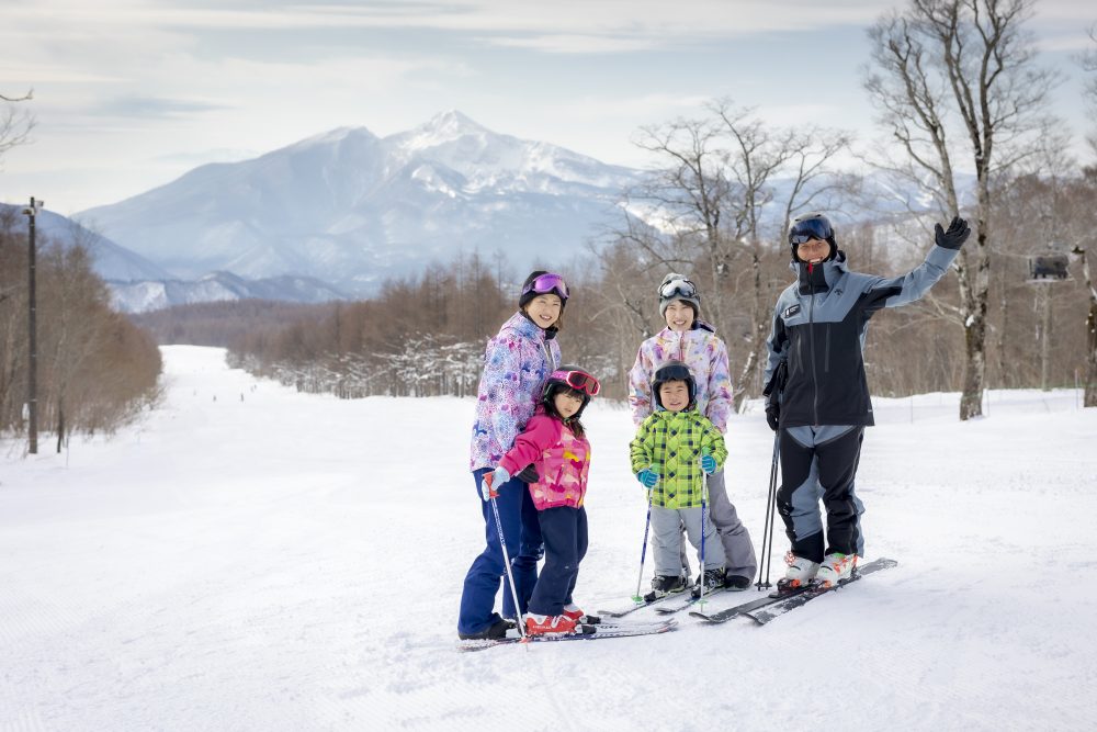 即使是初级者,也可以从顶峰开始一边欣赏磐梯山的绝景一边滑倒。