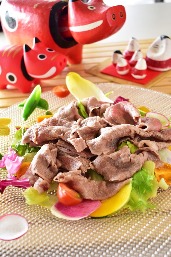 We have prepared a cool summer "Cow cold shabu salad" with soft texture and umami cold shabu with vegetables.